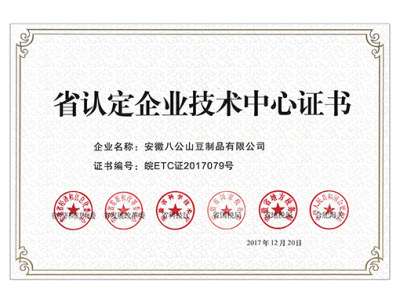 近年來,公司以“保護豆腐遺產,傳承豆腐技藝,弘揚豆腐文化”為理念,大力發展豆制品產業,企業通過ISO9001質量管理體系認證,被評為“全國豆制品行業50強企業”、“全國主食加工示范企業”、“中國豆制品行業質量安全示范單位”、“全國工業旅游示范點”、安徽省“農業產業化龍頭企業”。系列產品被授予“安徽名牌產品”、“安徽省知名旅游商品”稱號,“八公山泉”牌商標被評為安徽省“著名商標”。八公山豆腐被授予國家地理標志保護產品,其傳統制作技藝入選第四批國家級非物質文化遺產代表性項目名錄,我公司被文化部批準為該項目保護單位。
